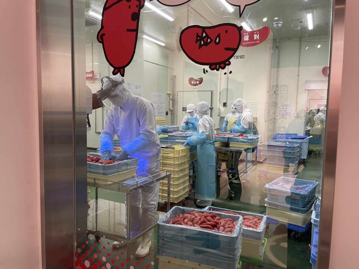施設内には明太子工場が併設されており、実際に明太子の製造工程が見学できたり、試食・お土産コーナー・キッズコーナーなど見どころ満載です。