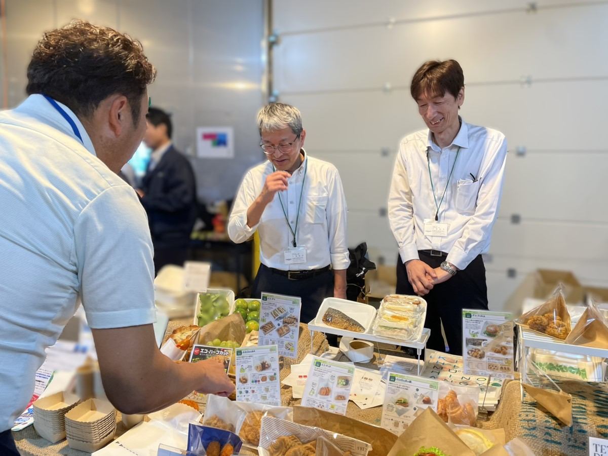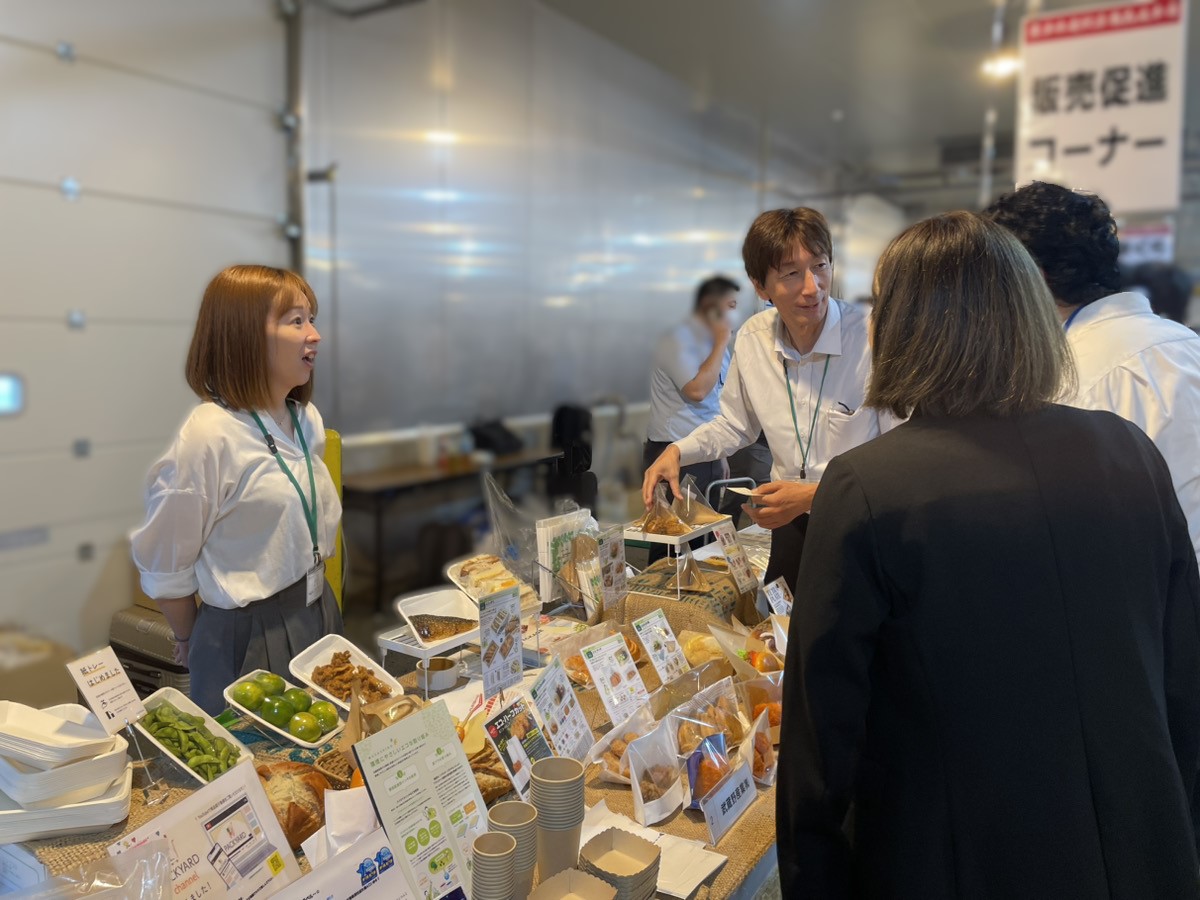 同イベントは水戸市公設地方卸売市場の特設会場で開かれ、年末商品に向けた様々な商品が各企業様より提案されています。メインは水産関係の食品や食材となっていますが、武蔵野産業株式会社ではオリジナル製品を含めたパッケージをご提案させて頂きました。