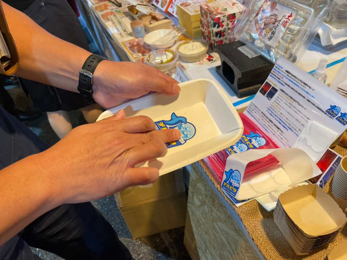 商品が濡れている状態でも上から貼ることができるラベルとなっており、水産関係のお客様では特に活躍が期待できるような製品となっています。